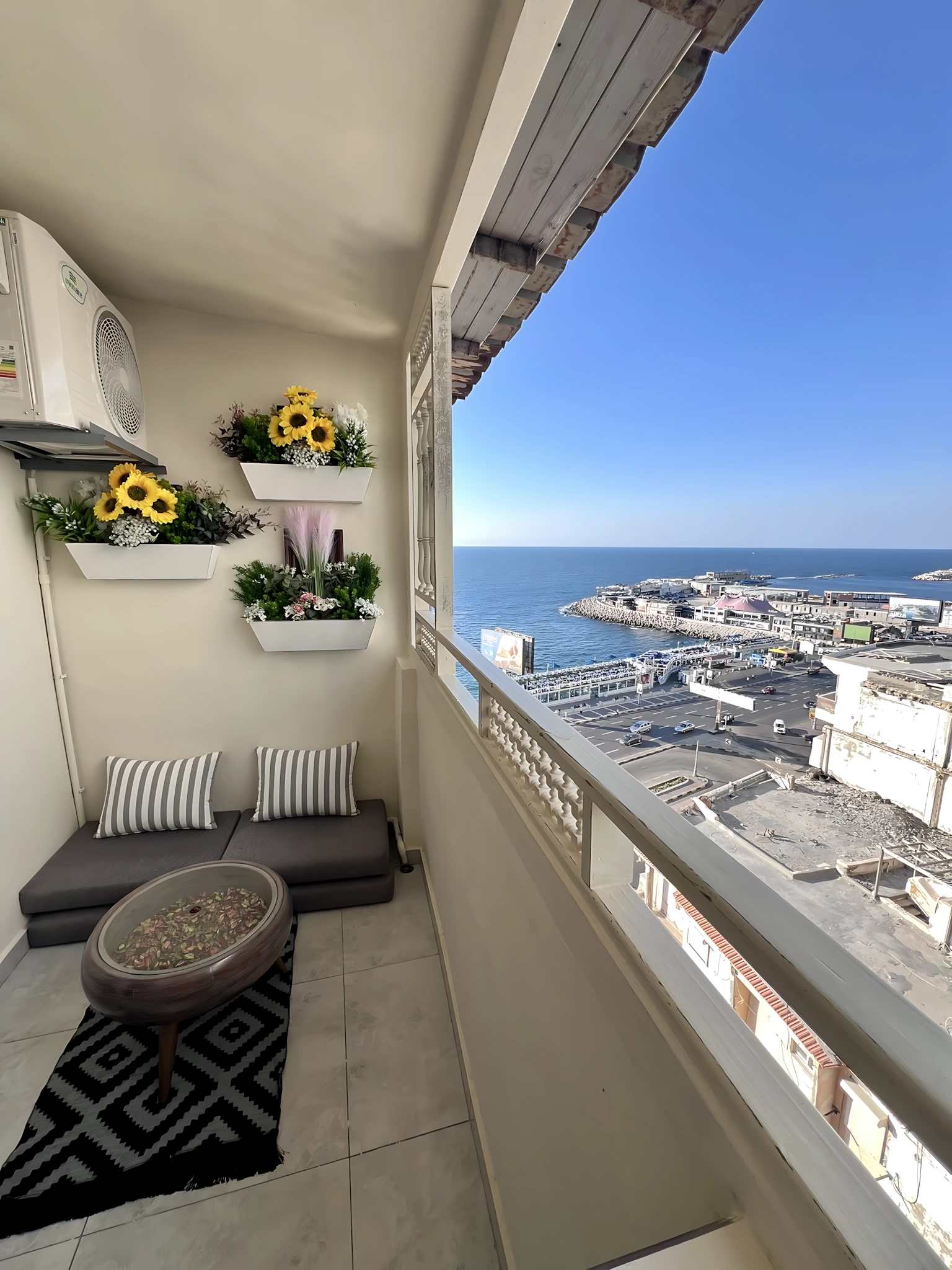 Ma Maison Cleopatra is your home away from home in Alexandria, offering breathtaking views of the beautiful Mediterranean Sea from a double balcony on the 10th floor. The apartment provides a warm and welcoming atmosphere, perfect for relaxing by the sea.