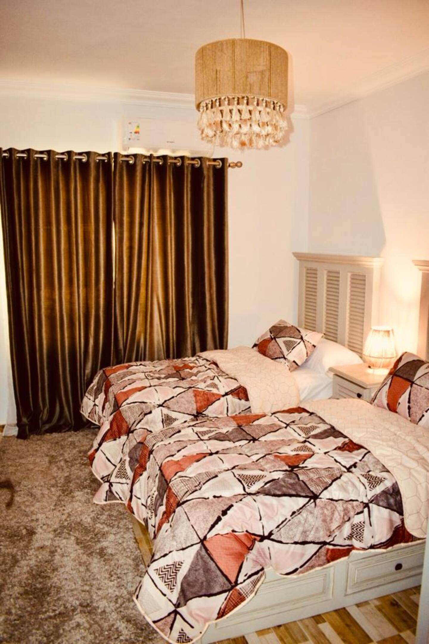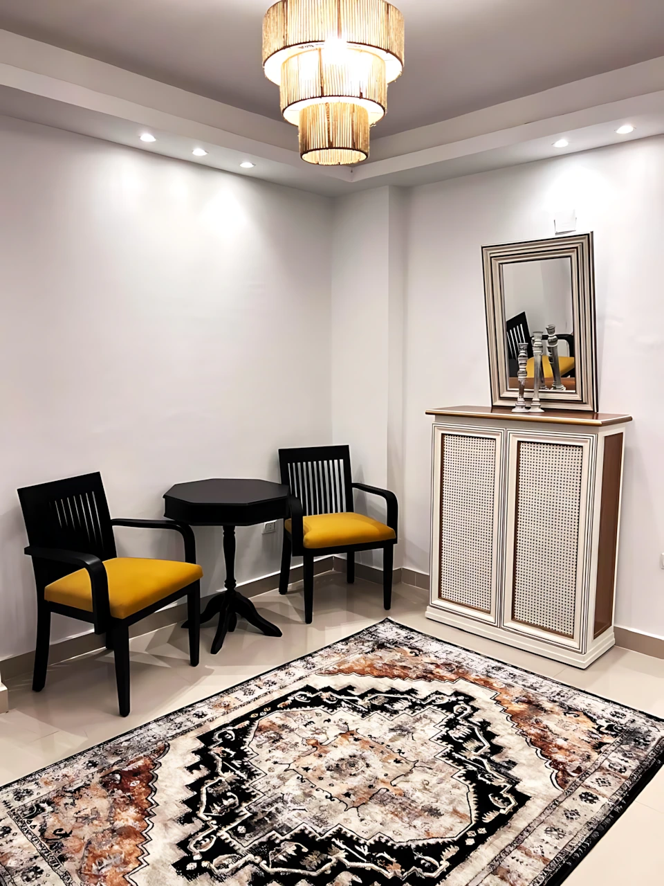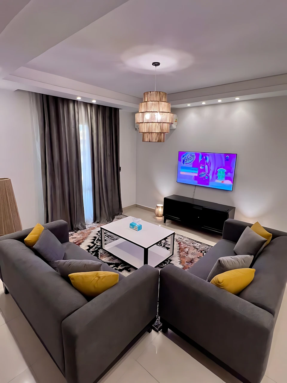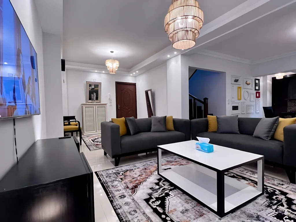 Ma Maison Sheikh Zayed is a stylish, newly refurbished duplex set in the heart of Sheikh Zayed. This luxury 180m² apartment offers a modern design and a warm, inviting atmosphere perfect for both short stays and extended visits. Its spacious layout make it an exceptional choice for guests seeking comfort and elegance.